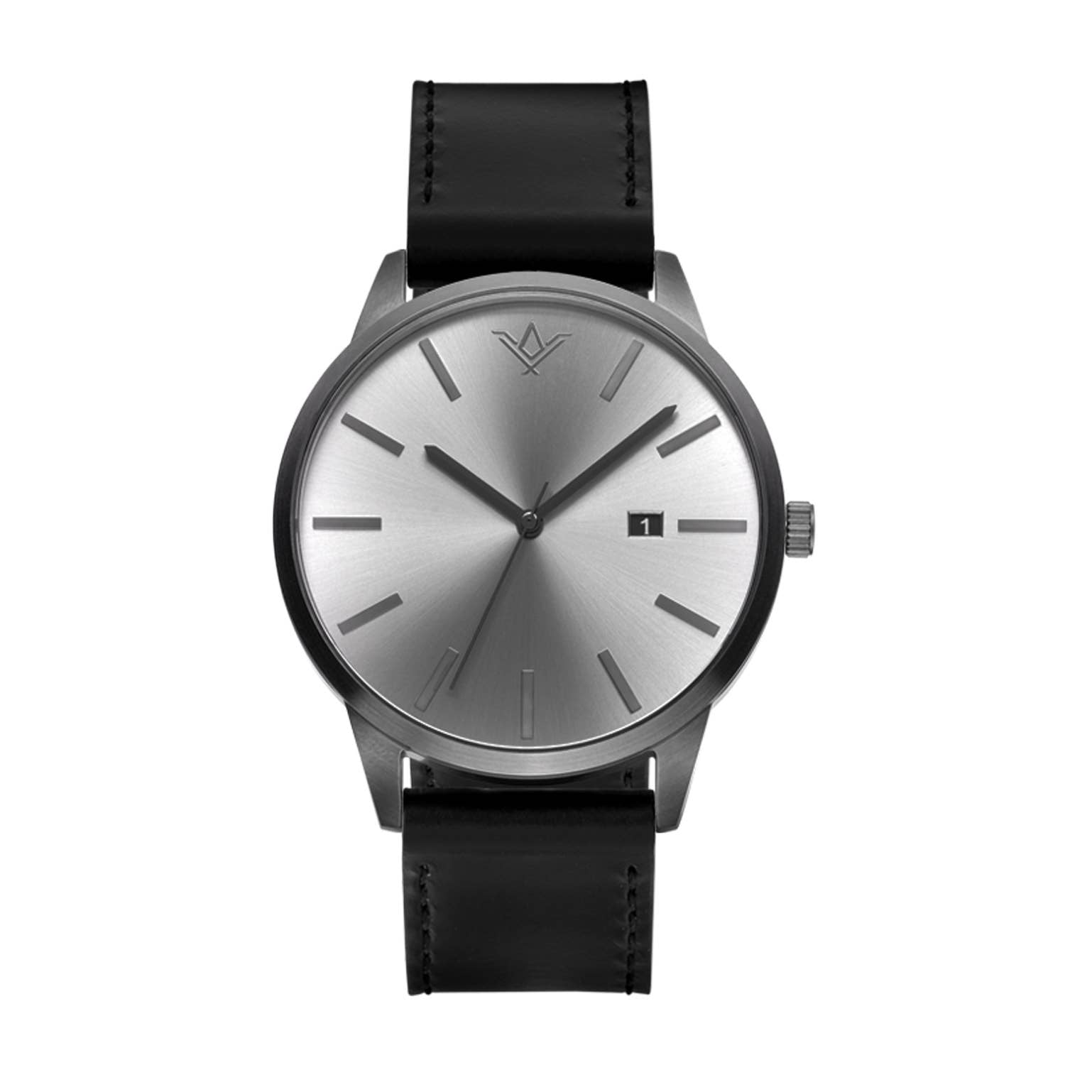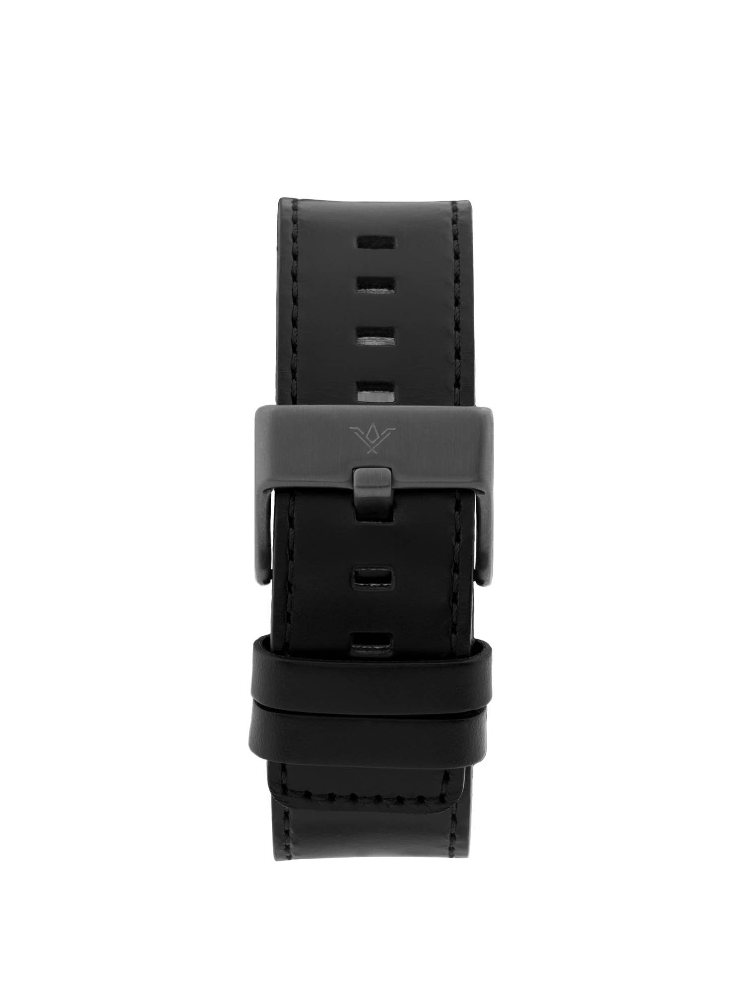 A clean timepiece with a 45mm case. Simple, but never basic. 9.0mm-thick case. Japanese Quartz movement with date. 24mm band width. Water resistant up to 5 ATM. Black Stainless-Steel hardware.