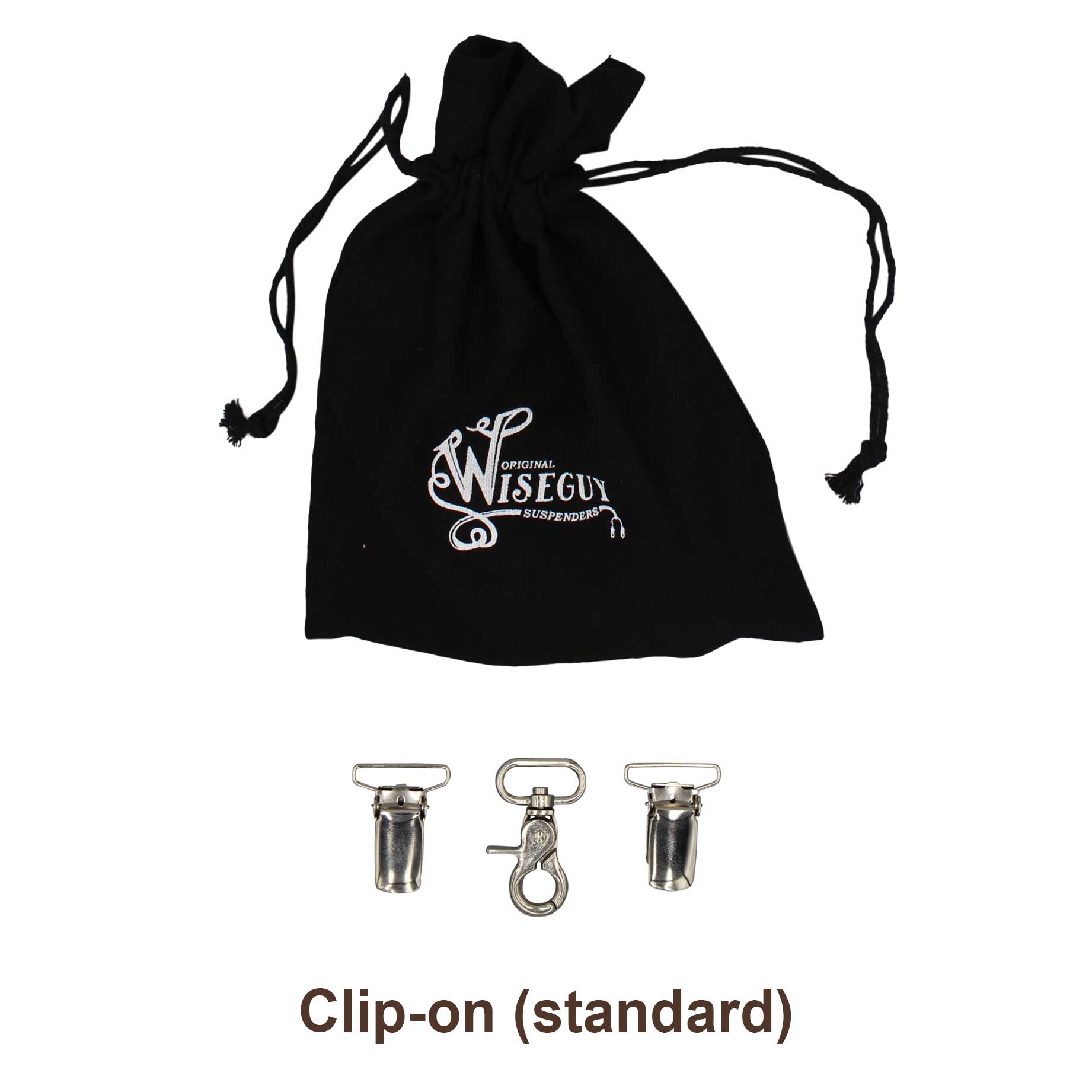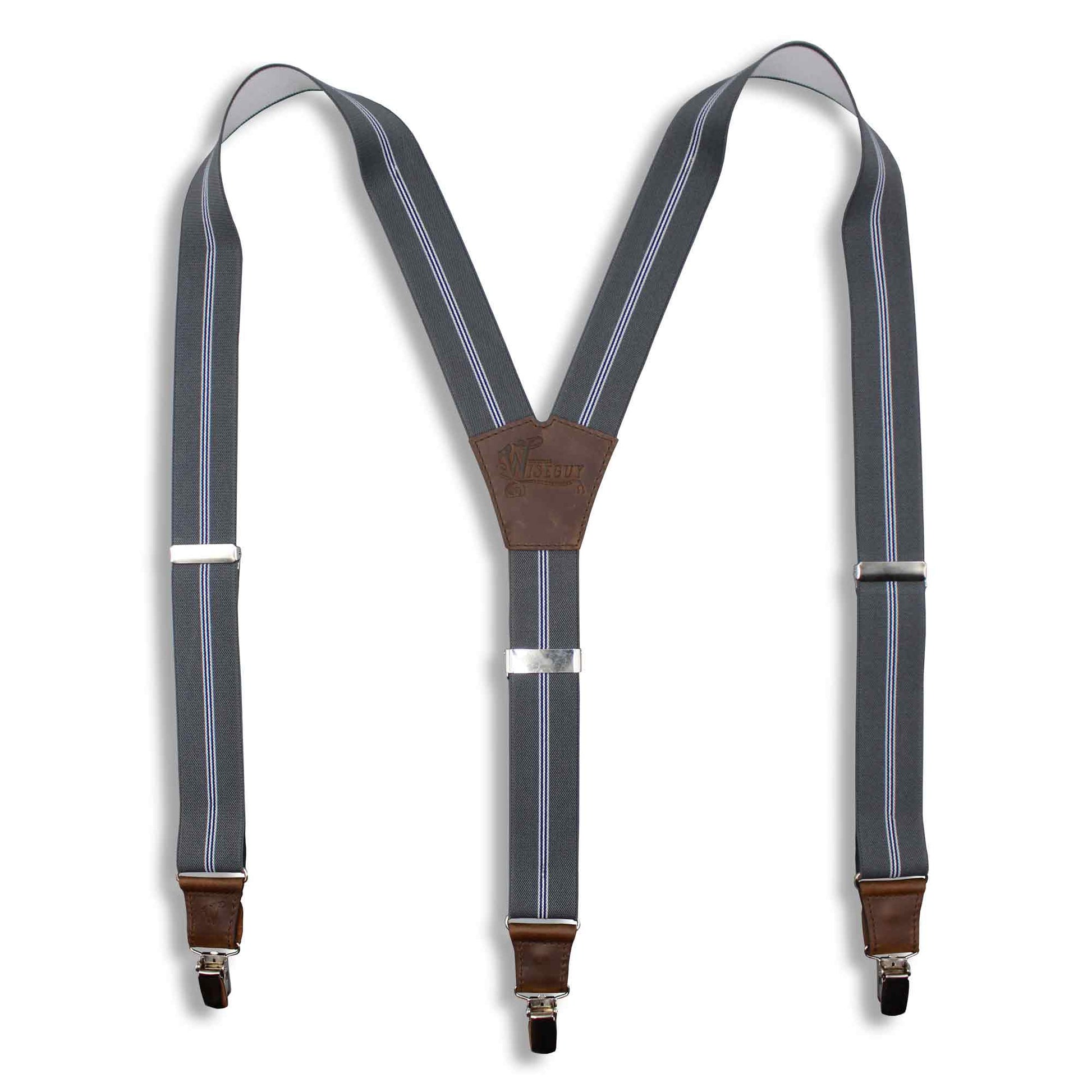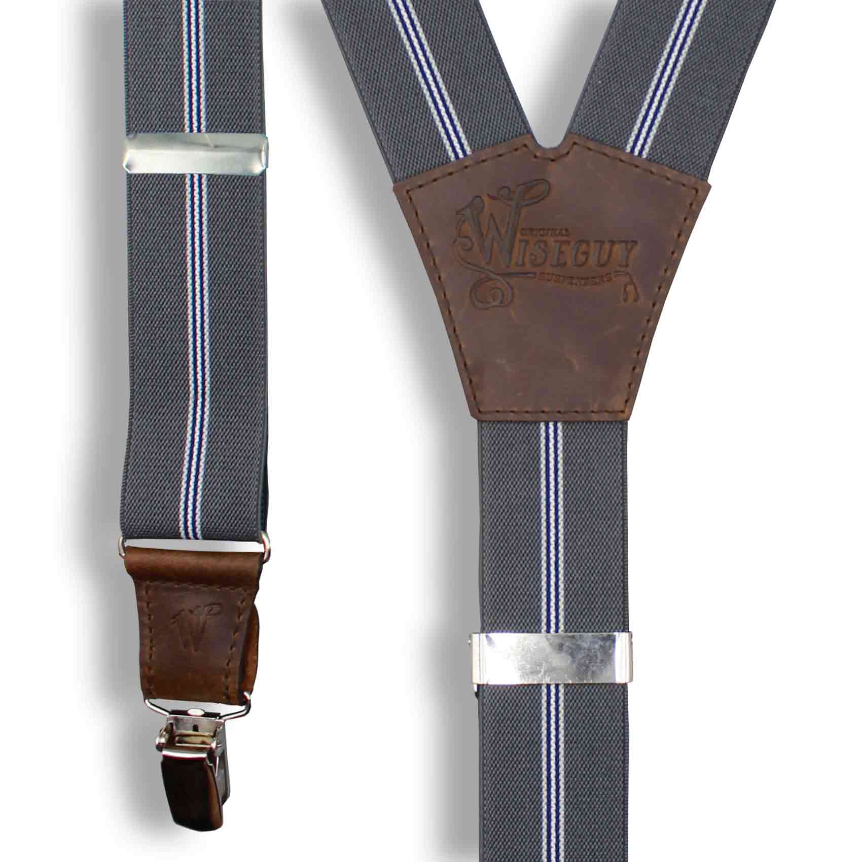 Executed in European crafted wide (1.3 inch / 3.5 cm) striped European elastic and equipped with dark brown USA nubuck and silver colored metal parts make these Wiseguy's the perfect suspenders to never let you down. Combine perfectly well with almost any suit, dress jacket or on a black or white shirt with your favorite denim.