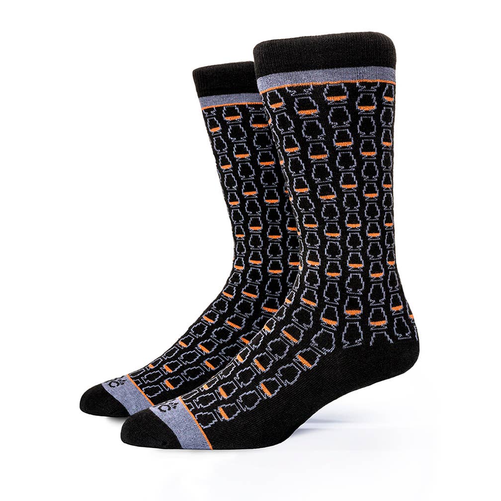 These socks draw inspiration from the iconic Glencairn whiskey glass, blending classic stripes with a subtle repeating design. Like a fine whiskey’s smooth character, they offer a refined style. In black and copper hues, they showcase bourbon-inspired patterns. Crafted to stay comfortably mid-calf, they’re made from 75% cotton, 23% nylon, and 2% lycra for a perfect fit. Suitable for men’s shoe sizes 8-12 and women’s 7.5+, these socks are easy to care for with machine wash cold and tumble dry low. Elevate your look with a touch of whiskey-inspired elegance.
